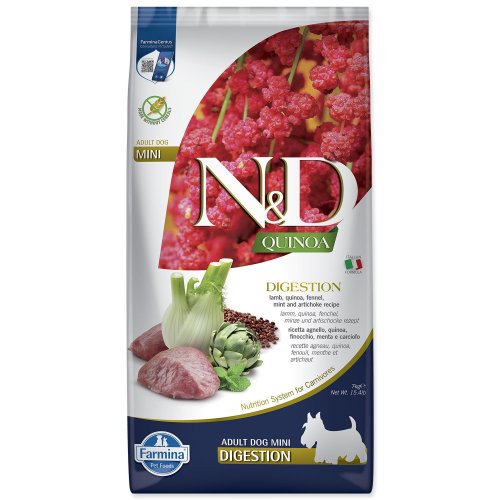 Jehně (22 %), hrachový škrob, dehydratovaný protein z jehněte (12 %), kuřecí tuk, sušená vejce, semínka quinoi (8 %), dehydratovaný protein ze sledě, rybí olej (ze sledě), sušený fenykl (2.0 %), sušená máta (2.0 %), sušené artyčoky (2.0%), inulin (0.6 %), fruktooligosacharidy (0.4 %), extrakt z kvasnic (zdroj mannanoligosacharidů) (0.4 %), uhličitan vápenatý, semena Psyllium husk, chlorid draselný, chlorid sodný, glukosamin, chondroitin sulfát.