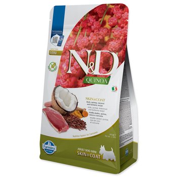 Farmina N&D Quinoa Skin & Coat je krmivo pro zvláštní účely výživy psů určené k podpoře omezení intolerance určitých komponentů a živin.