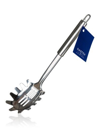 Naběračka na špagety AZORA vyrobená z nerezavějící oceli, je určena pro profesionální i domácí použití. Naběračka je opatřena praktickým očkem pro možnost zavěšení, snadno se udržuje, lze mýt v myčce na nádobí. Řada kuchyňského náčiní GASTEX splňuje náročné požadavky profesionálů a je vhodná i pro domácí použití. Jednoduchý funkční design zabezpečuje nadčasovost a dlouhou morální i kvalitativní životnost všech výrobků.