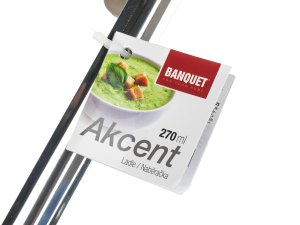 Nerezová naběračka AKCENT usnadní servírování omáček a tekutých pokrmů. Je opatřena háčkem pro snadné zavěšení na lištu nebo hrnec. Naběračka je vhodná do myčky nádobí.