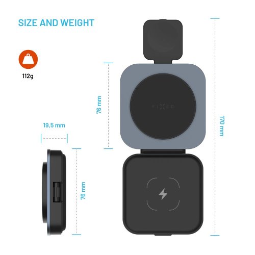 Bezdrátová skládací nabíječka MagFlex Alu s technologií MagSafe od Fixed je skvělým řešením pro současné nabíjení telefonu, sluchátek a hodinek. Její provedení vám dopřeje možnost klasického nabíjení na podložce. Nebo si jej snadno upravíte do podoby stojánku. Pokud potřebujete vzít si nabíječku na cesty, snadno ji složíte do kompaktního kapesného tvaru. Součástí balení je také USB-C/USB-C kabel.