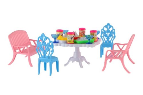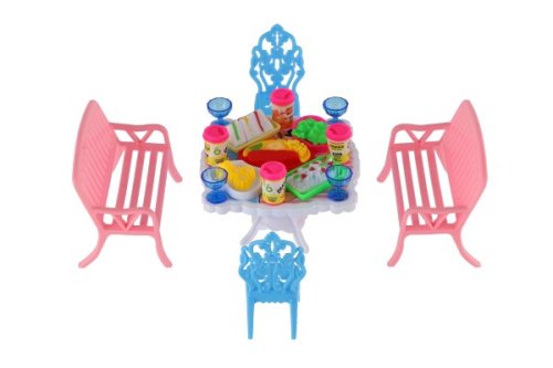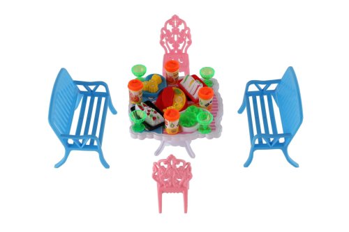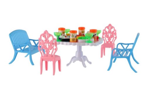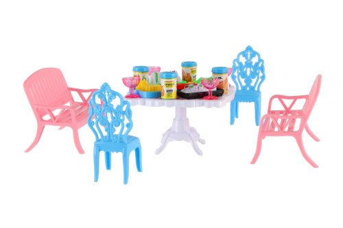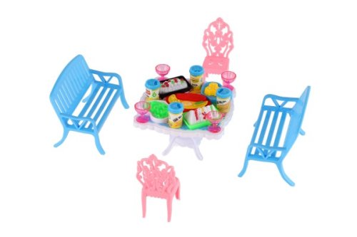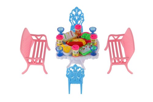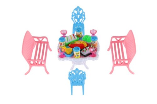 Potřebujete Vašim panenkám zpříjemnit sezení před domečkem? V tom případě je tato sada přesně pro Vás. Dvě lavičky, dvě židličky, stůl a doplňky v podobně pohoštění na stůl bude jistě oblíbenou část obydlí pro panenky. Rozměr balení: 14 x 11 x 16 cm Vhodné pro děti od 3 let