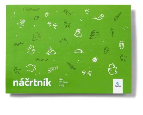 Náčrtník A4 je skvělý pomocník pro malé výtvarníky. Je vhodný pro kreslení obyčejnou tužkou nebo pastelkami. br brProč je dětský náčrtník zelený? Protože zelená je barva nových začátků a tento náčrtník je určený pro první dětské kresby. Kvalitní papír je vhodný pro malbu obyčejnou tužkou, pastelkami nebo uhlem. br brNáčrtník Svět A4 br• Formát: A4 br• Počet listů: 20 br• Papír: 90 g br• Lineatura: Čistá br• Vazba: Lepená