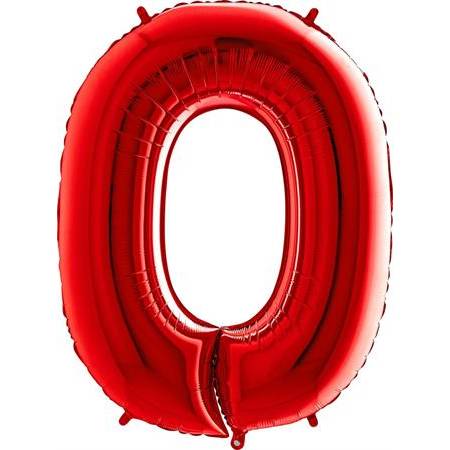 Červený balónek číslo 0. Balónek je vyrobený z pevné fólie.