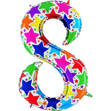 Nafukovací balónek číslo 8 barevné hvězdičky 102cm extra velký - Grabo