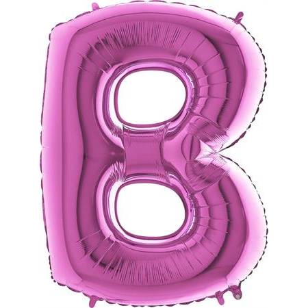 Růžový balónek písmeno B. Balónek je vyrobený z pevné fólie.