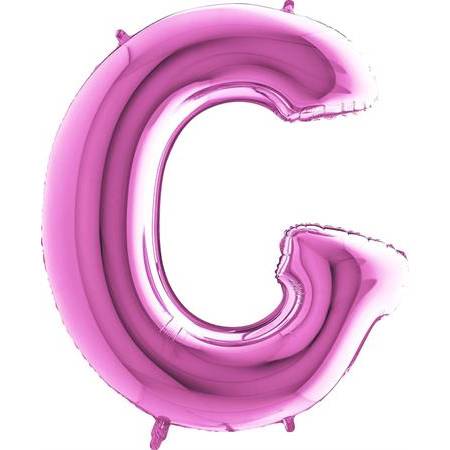 Růžový balónek písmeno G. Balónek je vyrobený z pevné fólie.
