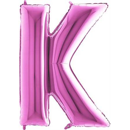Růžový balónek písmeno K. Balónek je vyrobený z pevné fólie.