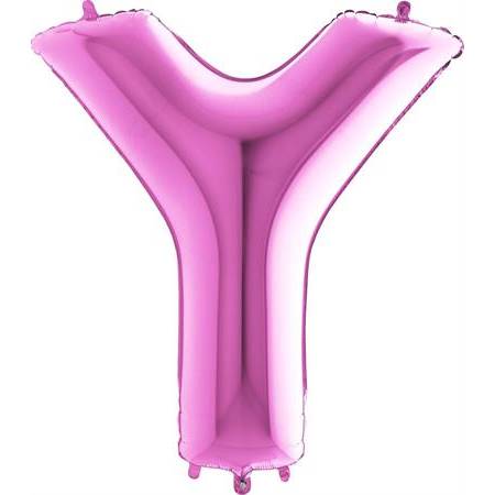 Růžový balónek písmeno Y. Balónek je vyrobený z pevné fólie.