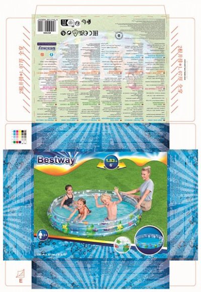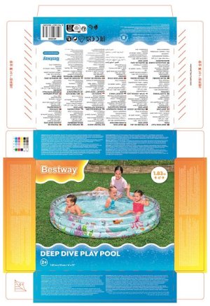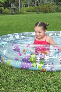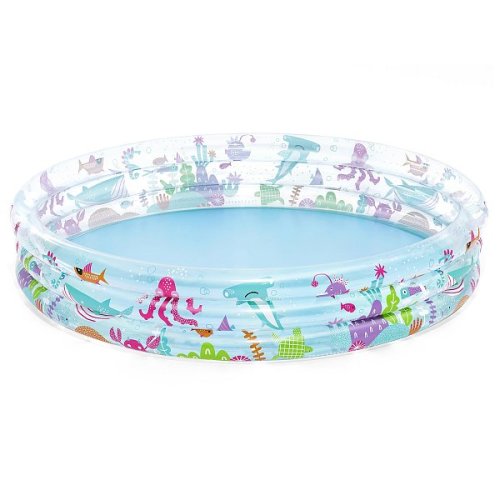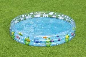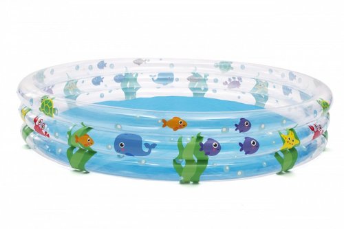 V horkých letních dnech není pro vaše děti lepší osvěžení než v nafukovacím bazénku. Bazének je vhodný jako brouzdaliště. Tříkomorový nafukovací bazén s motivy mořského světa. Bazének je vyroben z kvalitního PVC. Díky kompaktním vlastnostem jej lze snadno postavit na zahradu nebo vzít s sebou na cesty. Když den skončí, brouzdaliště lze snadno vypustit, složit a uložit na další sezónu. V chladnějších měsících můžete jednoduše přidat hrací míčky a děti se mohou doma bavit po celý rok. Obsah: 1x bazén, 1x záplata pro opravy. Rozměry nafouknutého bazénku: Ø 183 x 33 cm. Rozměry nenafouknutého bazénku: 171 x 171 cm. Rozměry balení: 24 x 30 x 6,5 cm. Objem bazénku: 480 l. Používejte pouze pod dohledem dospělé osoby. Věk: 2+