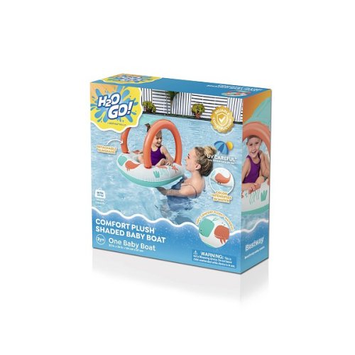 Dětský nafukovací člun se stříškou Bestway Comfort Plush je ideální pro malé děti o hmotnosti 11-15 kg. Tato loď má sluneční clonu blokující UV záření, která chrání jemnou dětskou pokožku, a je snadno odnímatelná díky uchycení na suchý zip. Děti se do nich mohou snadno dostat a vystoupit. Měkký, hladký sametový materiál Comfort Plush poskytuje dětem pohodlí. Barva materiálu se ve vodě stává jasnější a intenzivnější. Dvě vzduchové komory a bezpečnostní ventily dodávají této dětské lodi stabilitu a bezpečnost. Dětská loď Bestway Comfort Plush kombinuje pohodlí, bezpečnost a zábavu pro malé plavce. Pomáhá dětem zvykat si na vodu v útlém věku. Nafouknutá velikost člunu: 56,5 x 61,5 x 78 cm. Nenafouknutá velikost člunu: 67 x 84 cm. Rozměry balení: 19,8 x 19,8 x 5 cm. Určeno pro 1 osobu. Maximální nosnost: 30 kg. Používejte pouze pod dohledem dospělé osoby. Věk: 3+