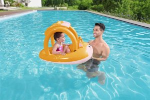 Nafukovací člun se stříškou s motivem lišky, rozměr 94 x 66 cm. Bezpečnostní ventily. Pevný a předem otestovaný vinyl. Kryt jako stínítko před sluncem, které lze sundat. Tři barevné míčky v tubusu. Obsah: Jeden bazénový plovák. Rozměr balení: 19,8 x 19,8 x 6,5 cm. Použití pouze pod dohledem dospělé osoby. Věk: 3+.