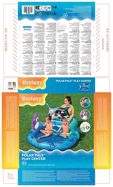 Bestway® vodní herní centrum Polar Pals™. Ponořte se do osvěžující Antarktidy s vodním herním centrem Bestway® Polar Pals™! Toto hravé vodní centrum, ideální pro děti od 2 let, slibuje hodiny vodní zábavy v roztomilém antarktickém tématu. Roh narvala a tuleňův nos slouží jako zábavná hra s házením kroužků, kde mohou malí dobrodruzi vyzkoušet své dovednosti. Kreativní zábavu navíc zajistí 2 pěnové rybičky. Děti si mohou hrát s rybkami nebo je vložit tučňákovi do tlamy a obohatit tak zábavu. Prostor bazénu nabízí prostor pro vodní radovánky a lze jej snadno vypustit pomocí integrovaného vypouštěcího ventilu. S vodní kapacitou 84 litrů je dostatek místa pro veselé cákání. Součástí: 3 kroužky ve tvaru ryby, 2 pěnové rybičky a opravná záplata. Vyrobeno z odolného PVC. Pojistné ventily. Nafouknutá velikost: 73 x 131 x 134 cm. Nenafouknutá velikost: 141,5 x 145,5 cm. Rozměry balení: 30 x 30 x 6,5 cm. Určeno pro 2 děti. Používejte pouze pod dohledem dospělé osoby. Věk: 2+