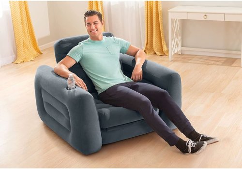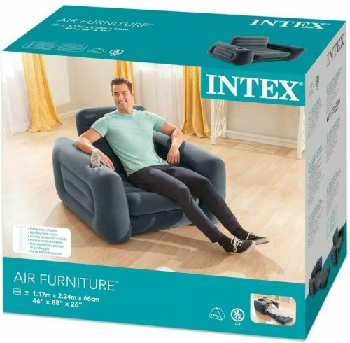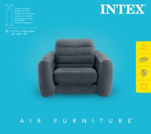 Nafukovací křeslo o velikosti 1,17 m x 2,24 m x 66 cm. Zabudovaný držák na nápoje. Snadné nafukování a vyfukování. Pouze pro vnitřní užití.