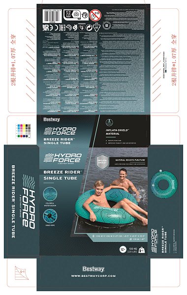 Bestway® Hydro-Force™ Nafukovací kruh Breeze Rider™ umožní malým i větším plavcům užít si zábavu ve vodě. Vyrobený je z velmi kvalitního a odolného PVC materiálu a disponuje průměrem 119 cm. Plovací kruh Bestway je ideálním doplňkem pro vodní aktivity dětí i dospělých. Stačí si do něj sednout a nechat se unášet vodou. Kruh má jednu vzduchovou komoru, pojistné ventily a elastický popruh po polovině obvodu. Včetně opravné záplaty. Nafouknutá velikost kruhu: Ø 106 x 27 cm. Nenafouknutá velikost kruhu: Ø 119. Rozměry balení: 19,8 x 19,8 x 6 cm. Určeno pro 1 osobu. Maximální nosnost: 100 kg. Věk: 12+