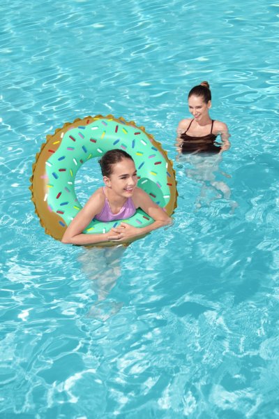 Nafukovací kruh o průměru 91 cm je vyroben z pevného a odolného vinylového materiálu. Kruh je k dispozici ve veselém designu donutu. Maximální nosnost je 80 kg.