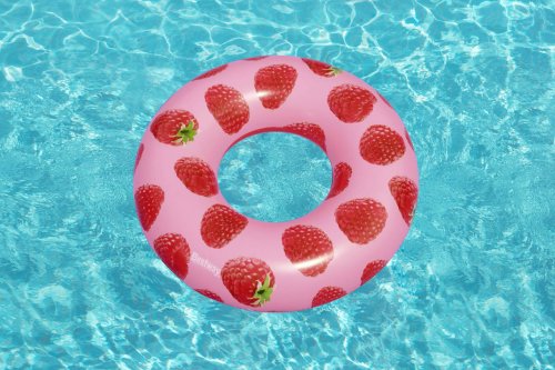 Bestway nafukovací kruh Malina s trendy moderním potiskem a sladkou malinovou vůní. Roztomilý potisk je ideální na letní party u bazénu. Průměr kruhu: 1,19 m. Kruh se snadno nafukuje, vyfukuje a skládá. Doporučený věk: 12+. Obsahuje: 1 nafukovací kruh, 1 opravnou záplatu. Užívání vždy pod dohledem dospělé osoby.