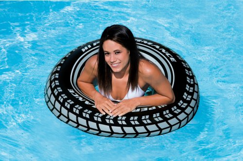 Nafukovací kruh pneumatika je plavecká pomůcka pro plavání a vodní hrátky. Nafukovací plavací kruh vzor pneumatiky. Tloušťka materiálu 0,23 mm, průměr kruhu 91 cm. Maximální zatížení je 60 kg. Vhodné pro děti od 9 let.