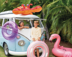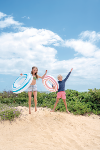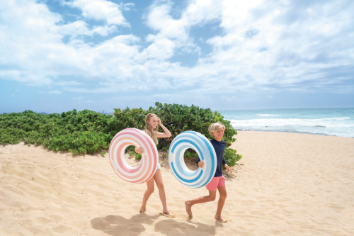 Velký nafukovací kruh s pevnými madly pro děti od 9 let s pruhy.