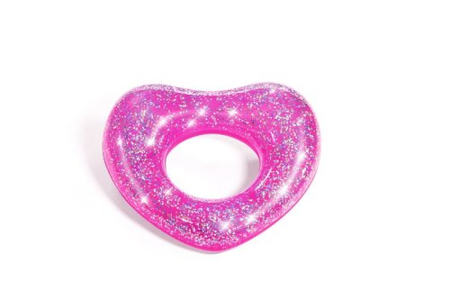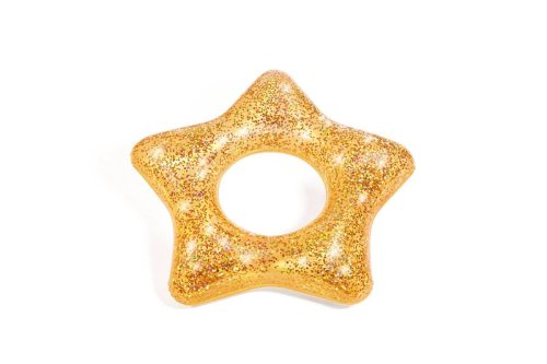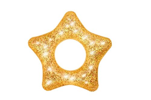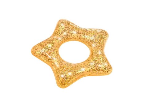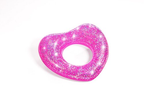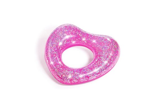 Nafukovací plážový kruh plný třpytek. Barevné třpytky v kruhu se na slunci třpytí a vytvářejí atraktivní efekty. Kruh je v provedení růžového srdce nebo zlaté hvězdy. Vyrobeno z kvalitního a odolného vinylu. Průměr: 91 cm. Rozměr balení: 33 x 19 x 1,5 cm. Věk: 10+. Používejte pouze pod dohledem dospělé osoby.