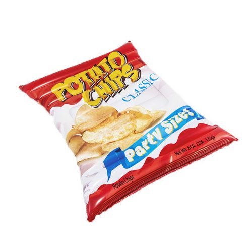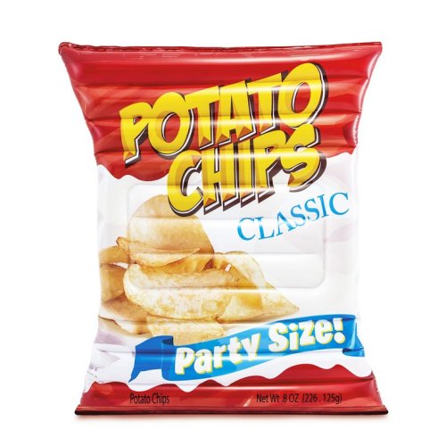 Parádní nafukovací lehátko v designu balíčku chipsů nesmí chybět na žádné letní dovolené! Lehátko o rozměrech 178 x 140 cm je vyrobeno z kvalitního PVC materiálu. Dopřej si to pravé letní dobrodružství v moři nebo v bazénu! Maximální nosnost 100 kg.