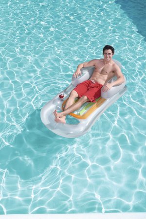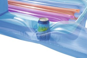 LEHÁTKO MÓDNÍ NÁVRHÁŘ je ideální na relax na vlnách s chlazeným drinkem po ruce. Lehátko obsahuje bezpečnostní ventily a je vyrobeno z kalitního vinylu. Pohodlí zajistí opěradlo paží a zad. Integrovaný držák na šálek. Transparentní barevné PVC s barvenými vzduchovými kanálky. Konstrukce se 2 vzduchovými komorami. Obsahuje náhradní záplaty. V nabídce ve dvou barevných provedeních. Max. kapacita 90 kg. Určeno pro 1 dospělou osobu. Rozměr: 161 x 84 cm.