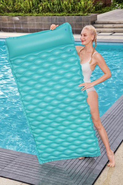 Nafukovací lehátko 2,13 m x 86 cm. Lehátko je vyrobeno z kvalitního vinylu s dvěma vzduchovými komory a ve třech barvách. Maximální váhový limit je 90 kg. Opravná záplata je součástí balení.