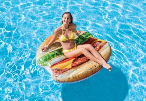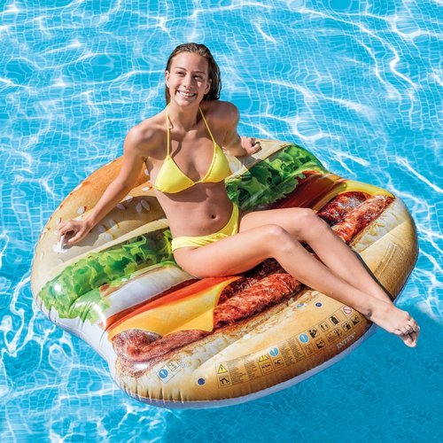 Nafukovací lehátko Hamburger o velikosti 145  x 142 cm. Opravná záplata přiložena. Vyrobeno z kvalitního vinylu. Dopřej si to pravé letní dobrodružství v moři nebo v bazénu!