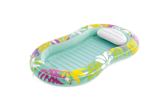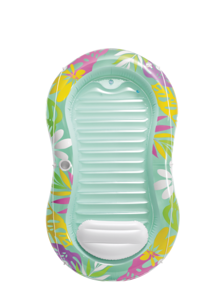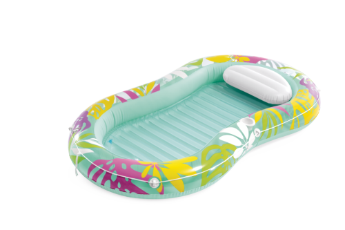 Nafukovací lehátko s polštářkem Tropical Oasis představuje ideální doplněk pro relaxaci na vodě během teplých letních dní. Lehátko je navrženo s důrazem na pohodlí a funkčnost, což zajišťuje zvýšený okraj a integrovaný bílý nafukovací polštářek, který umožňuje pohodlné opření hlavy. Povrch lehátka je vybaven nafukovacím žebrováním, které zlepšuje komfort při ležení a zároveň pomáhá udržet stabilitu na vodě.