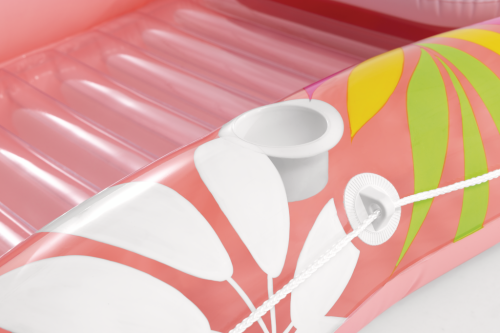Praktickou součástí lehátka je držák na pití, který je umístěn na boční straně, což umožňuje bezpečné uložení nápoje během odpočinku. Nafukovací ventil umožňuje rychlé a snadné nafouknutí i vyfouknutí lehátka, což usnadňuje jeho přenos a skladování. Lehátko Tropical Oasis je k dispozici ve dvou barevných variantách – korálově růžové a mentolově zelené, takže si každý uživatel může vybrat podle svého vkusu.
