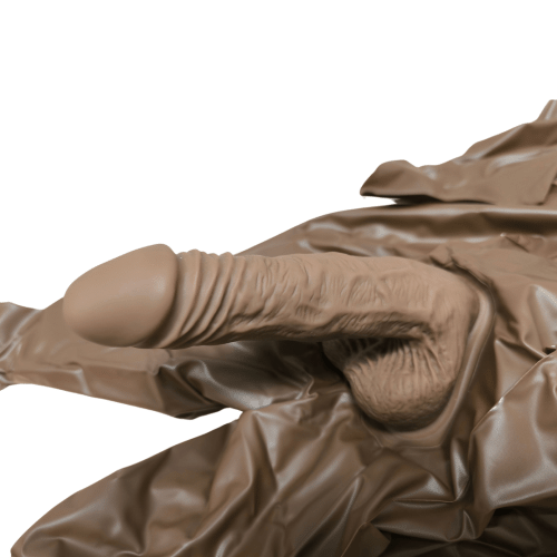 Material PVC, penis a anální otvor z měkčeného PVC (gelový materiál).