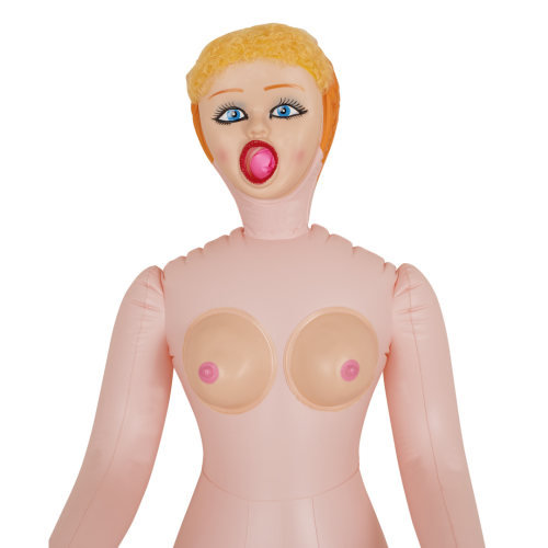 Pamela s dlouhými blond vlasy a třemi otvory.