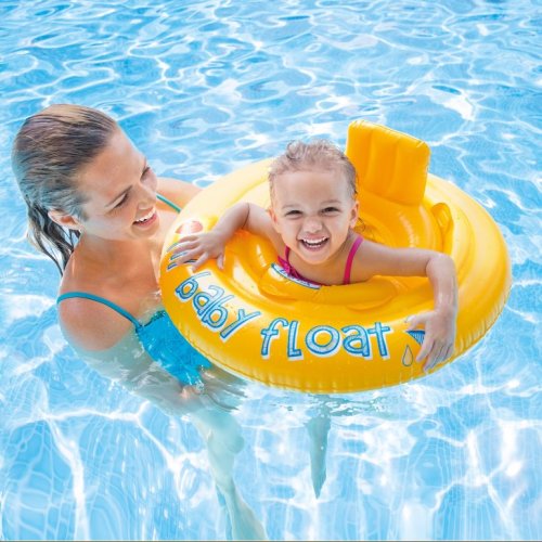 Dvojitý nafukovací kruh s opěrkou a křížovým dnem. Kruh je vhodný pro nejmenší děti již od 6 měsíců do 1 roku. UPOZORNĚNÍ: Používat pouze ve vodě takové hloubky, kde dítě stačí, a pouze pod dohledem dospělé osoby.