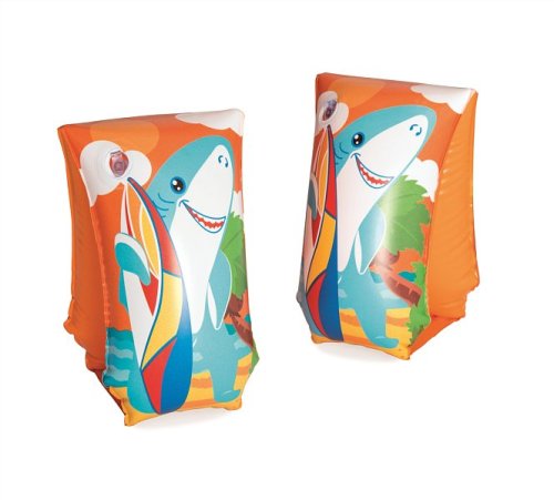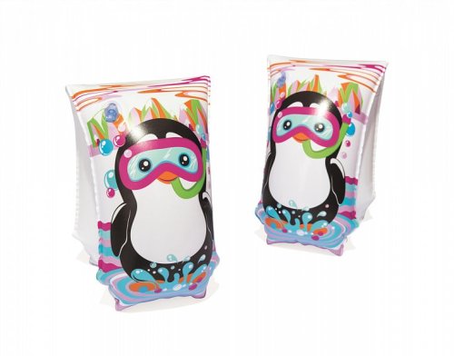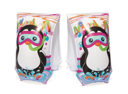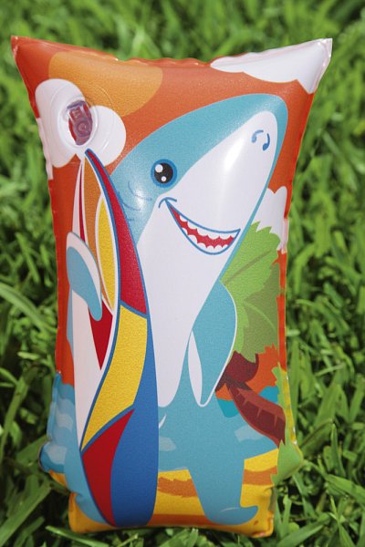 Dětské nafukovací rukávky v okouzlujícím designu. Můžete si vybrat ze dvou motivů - žraloka či tučňáka. Rukávek má dvě vzduchové komory. Rozměr rukávku 30 x 15 cm. Věk: 5-12let. Užívání vždy pod dohledem dospělé osoby.