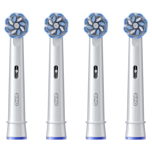 Kartáčková hlava Oral-B Sensitive Clean obsahuje kombinaci extra měkkých vláken, která jsou šetrná k dásním, a běžných vláken, která jsou nekompromisní k zubnímu plaku. V porovnání s běžným manuálním zubním kartáčkem odstraňuje až o 100 % více zubního plaku a o 100 % snižuje zánět dásní. Originální kartáčkové hlavy Oral-B jsou navrženy s novými vlákny ve tvaru X, která čistí v místech, kam kulaté hlavy nedosáhnou. Ukazatel opotřebení kartáčkové hlavy změní vlákna ze zelené barvy na žlutou a ukazuje tak, kdy je hlavu nutné vyměnit pro 100% účinnost čištění. Zaručená kompatibilita se všemi dobíjecími zubními kartáčky Oral-B, s výjimkou zubních kartáčků Pulsonic a iO.