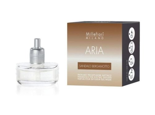 Santálové dřevo a bergamot - vzácné koření ze santálového dřeva je považované za symbol životní síly. Jeho intenzivní kořeněné aroma odstraňuje stres a nervozitu, zpomaluje ale neuspává, lehce se snoubí s čerstvým závanem levandule, grapefruit.K náplni je třeba mít elektrickou jednotku/strojek do zásuvky. Náplň má obsah 20 ml pro 6-8 týdnů vůně. V řadě ARIA je v nabídce 11 nejoblíbenějších vůní značky Millefiori plus funkční vůně Smoke s aktivními složkami, které efektivně neutralizují pach z cigaret.