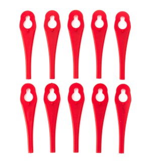 Náhradní plastové nože pro sekačku Riwall PRO RALT. Balení obsahuje 10 ks nožů.