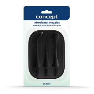 Set ZK0008 obsahuje 3 náhradní hlavice k dentální sprše. Tryska NORMAL pomůže s odstraněním zbytků jídla a plaku v ústech, ORTHODONTICS pomůže s odstraněním nečistot v těžko přístupných místech v okolí rovnátek a TONGUE je speciální tryska pro čištění jazyka, která napomáhá k udržení svěžího dechu. Abyste zachovali vysokou míru efektivity čištění, hlavici měňte každých 6 měsíců. Náhradní hlavice jsou plně kompatibilní s modely Concept ZK402x a ZK4030.