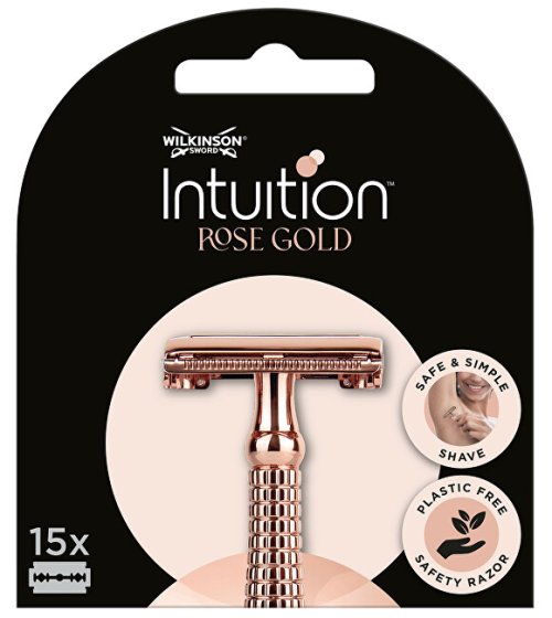 Náhradní žiletky pasují do holicího strojku Intuition Double Edge Rose Gold, jehož rukojeť je zcela bez plastu a je vyrobena z obzvláště kvalitního kovu, takže díky vlastní hmotnosti klouže po pokožce bez tlaku. Čepel můžete snadno vyjmout a vyměnit.