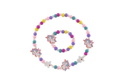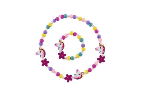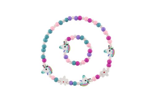 Náhrdelník a náramek korálky jednorožec dřevo/plast 20cm