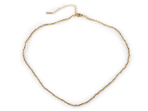 Poutavý náhrdelník vyrobený z broušených korálků pokoveného hematitu a kvalitní nerezové oceli je velice elegantní, patří mezi šperky, které díky své fascinující povrchové úpravě zaujmou na první pohled. Náhrdelník potěší každou ženu, je dárkem, se kterým nešlápnete vedle. Hodí se ke slavnostním příležitostem, skvěle podtrhne i business styl oblékání. Zapíná se na karabinku a prodlužovací řetízek.