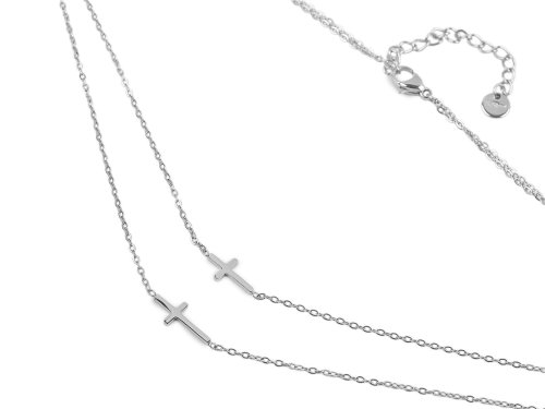 Dvojití náhrdelník s křížky je elegantním doplňkem, který zaujme svou jemností a rafinovaným designem. Lesklý povrch mu dodává luxusní vzhled, zatímco decentní křížky přináší symboliku a styl do každodenního outfitu. Zapíná se na karabinku. Díky adjustačnímu řetízku se snadno přizpůsobí vašemu krku, aby pokaždé perfektně seděl. Rozměry křížků jsou 6 x 12 mm a 6 x 15 mm.