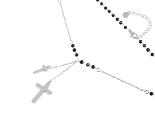 Náhrdelník s křížky je perfektním doplňkem pro ty, kteří milují jemnou kombinaci moderního a klasického designu. Jemně broušené korálky v kombinaci se zářivým kovovým leskem vytvářejí sofistikovaný vzhled, který přitahuje pozornost. Zapíná se na karabinku. S možností adjustačního řetízku se snadno přizpůsobí vašemu krku, aby pokaždé perfektně seděl.