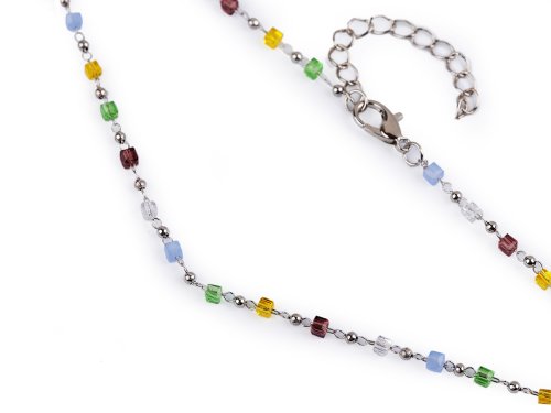 Náhrdelník z nerezové oceli se skleněnými korálky a perlami - multikolor stříbrná