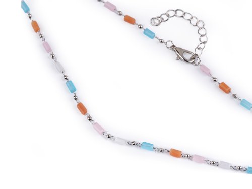 Náhrdelník z nerezové oceli se skleněnými korálky - multikolor stříbrná