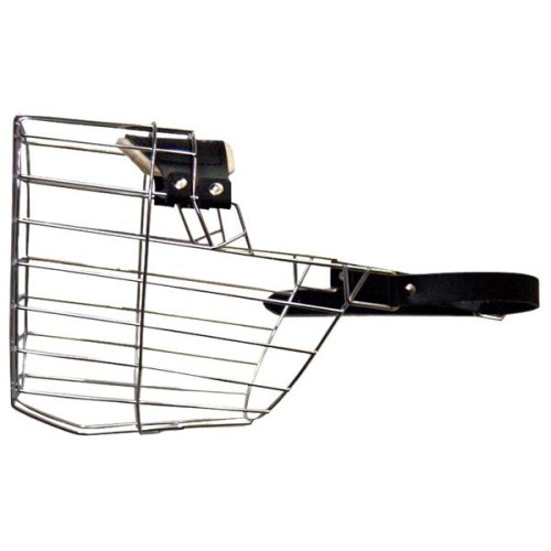 Kovový náhubek s koženými řemínky na zapínání. Vhodný zejména pro německé ovčáky a podobná plemena.