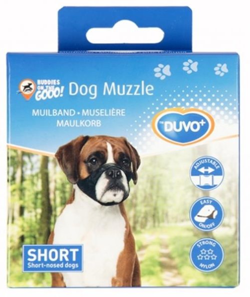 Tento pohodlný náhubek značky Duvo+ zabraňuje kousání, žvýkání nebo štěkání psa. Určen ke krátkodobému použití např. při ošetření u veterináře.
