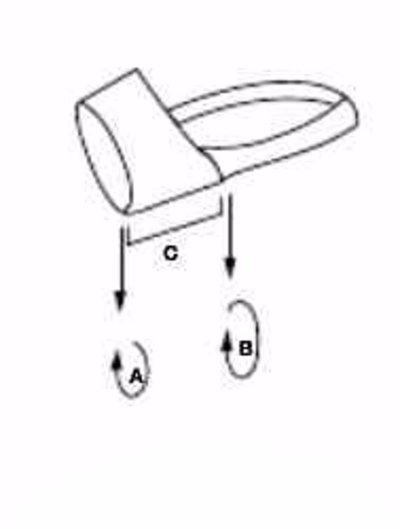 A - malý obvod = 19 cm, B velký obvod = 25 cm, C délka = 10 cm