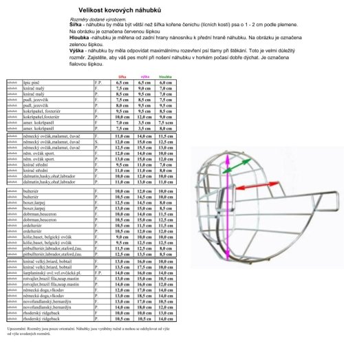 šířka náhubku - měla by být o 1 – 2 cm větší než šířka kořene čenichu /lícních kostí/