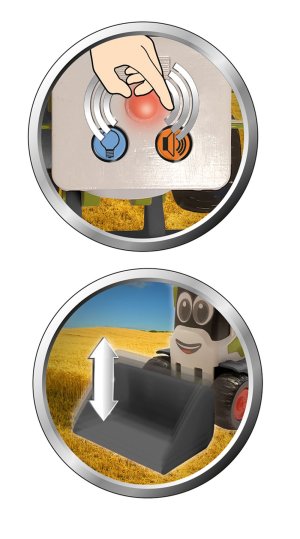 Nakladač o délce 19 cm. Obsahuje zvukové a světelné efekty. Nakládací lopata je plně pohyblivá. Baterie jsou součástí balení.